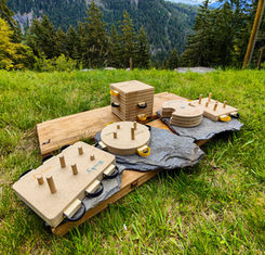 Ces jeux sont entièrement fabriqués de manière artisanale par Papy Thierry. Il travaille dans son chalet avec ses propres outils et utilise un maximum de matériaux de récupération.